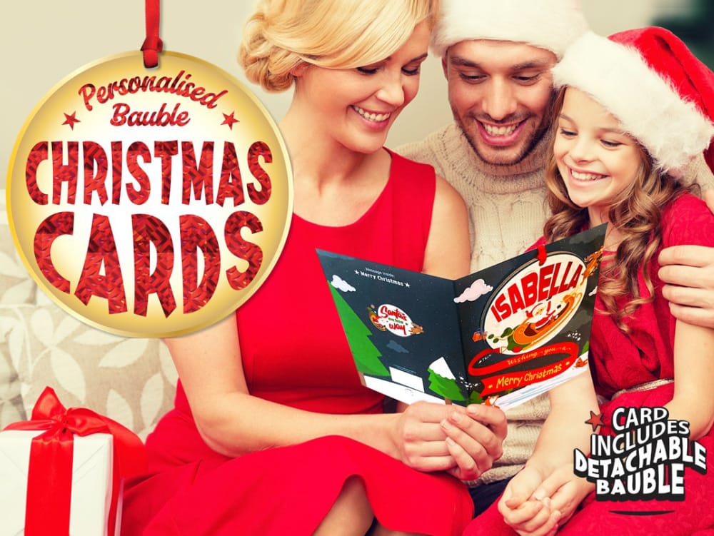 • Each name Christmas Card features a unique round detachable decoration for double the value & fun