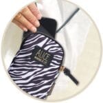 - Main pocket has a large accessible opening with gold zip and leatherette pull and is ideal for keeping phones safe