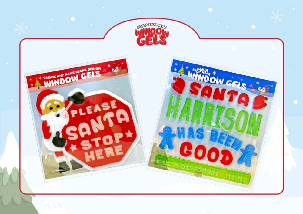 Personalised window gels are perfect for the Christmas season. Easily applied to children’s bedroom windows or any non-porous surface, the removable and washable gels are bright and colourful, ensuring that Santa makes that all important stop.