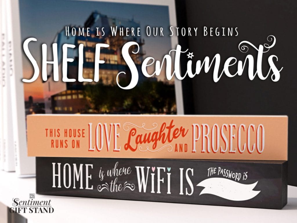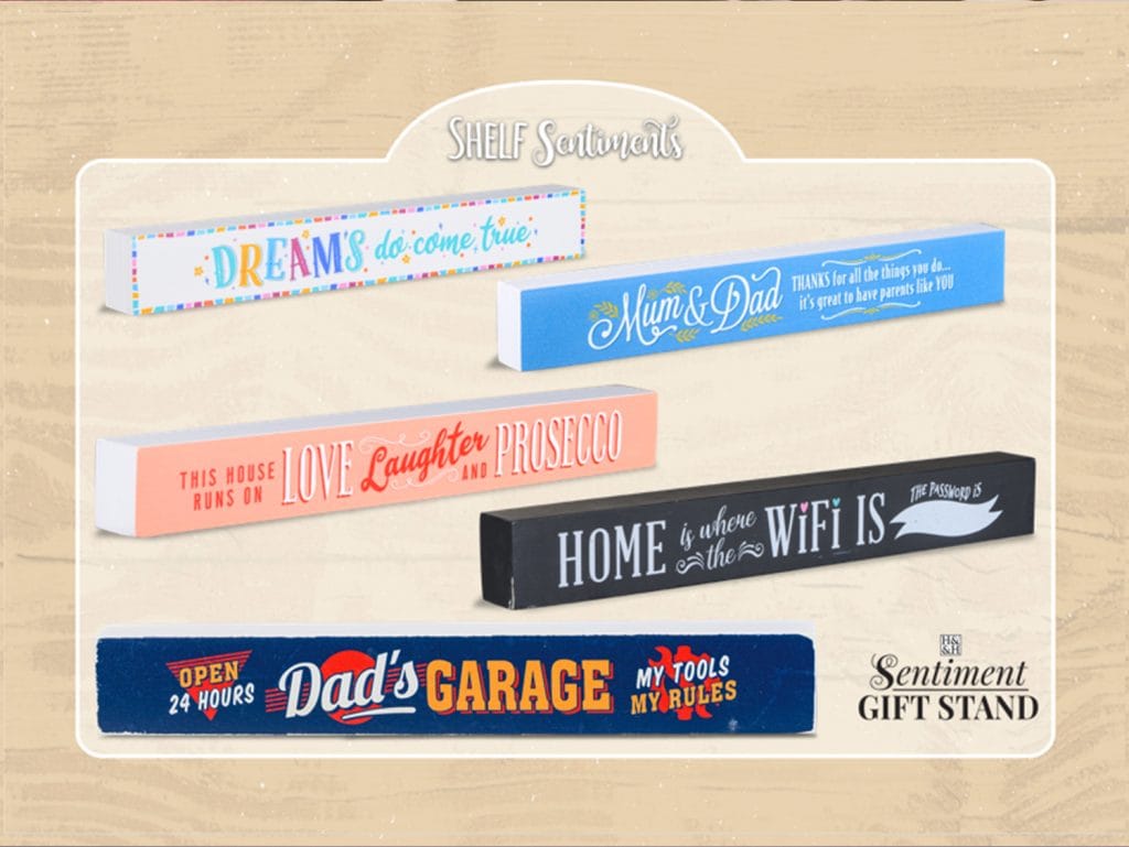 Freestanding horizontal wooden blocks featuring inspirational sentiment and text for occasions, friends and relations.